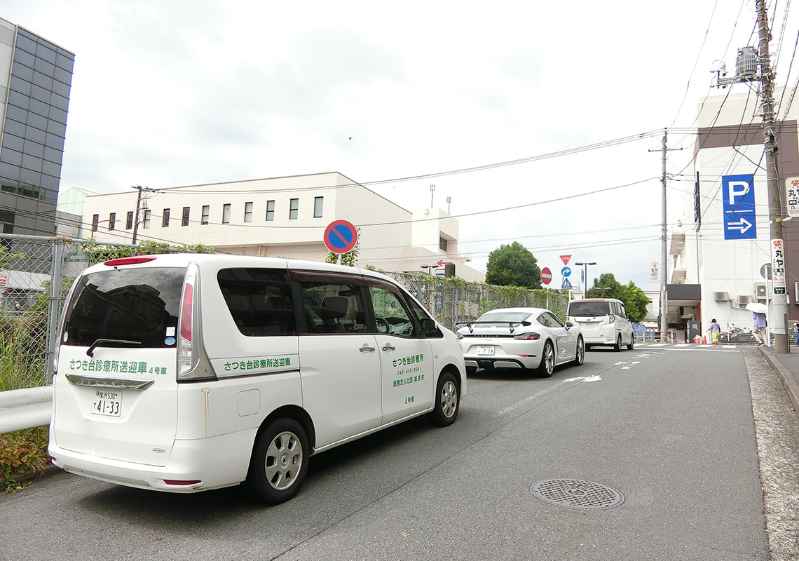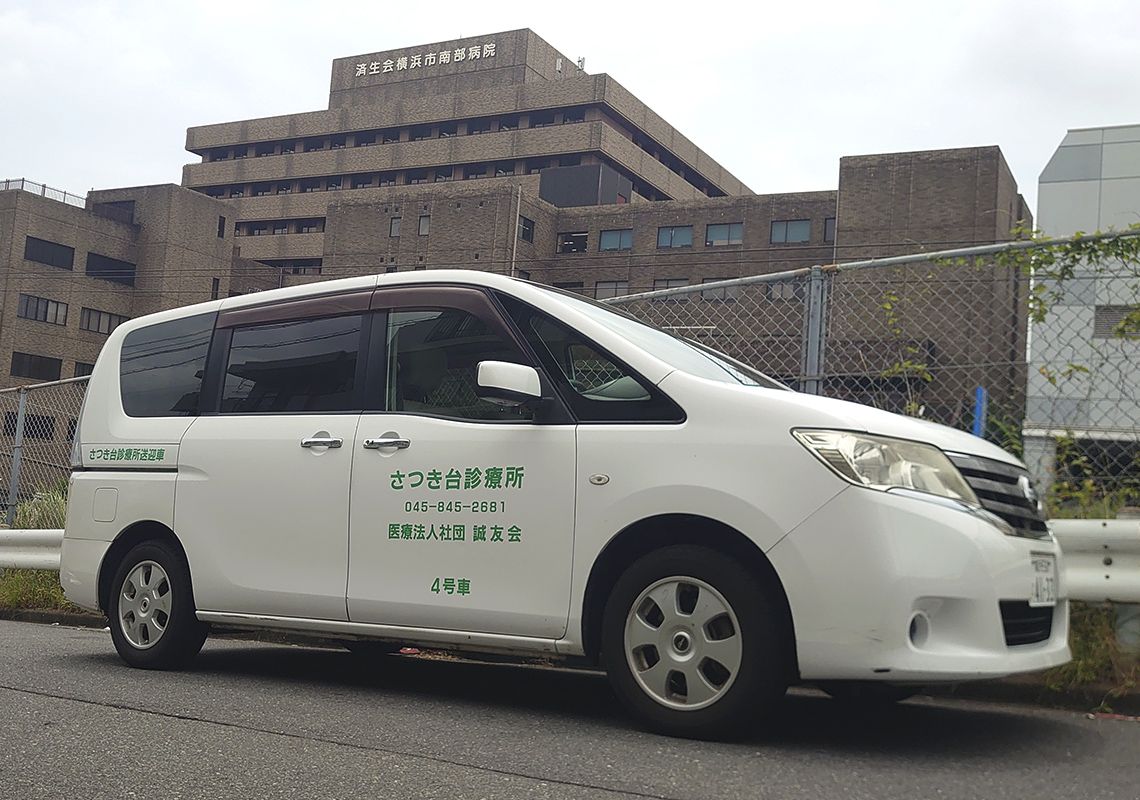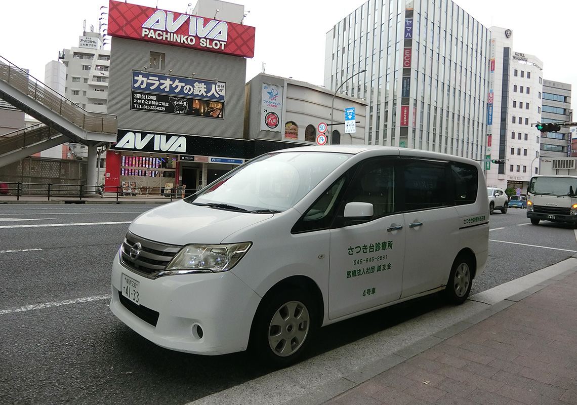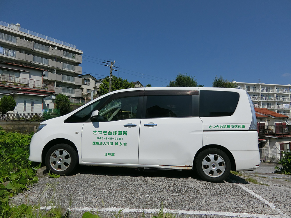 送迎車は白のバンで、側面に「さつき台診療所」と表示してあります。